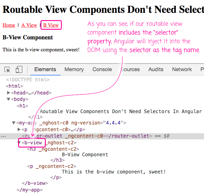 Routable View Components Don't Need Selectors In Angular 4.4.4