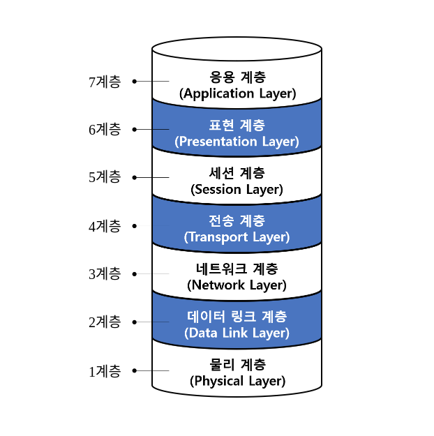 7) 응용 계층 : 이메일, 파일전송, 웹사이트 조회 등 어플리케이션에 대한 서비스 제공