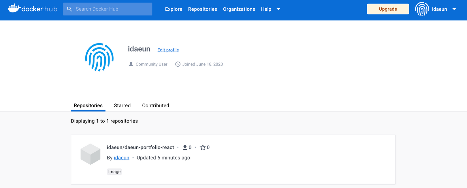 Docker Hub에 올라간 모습