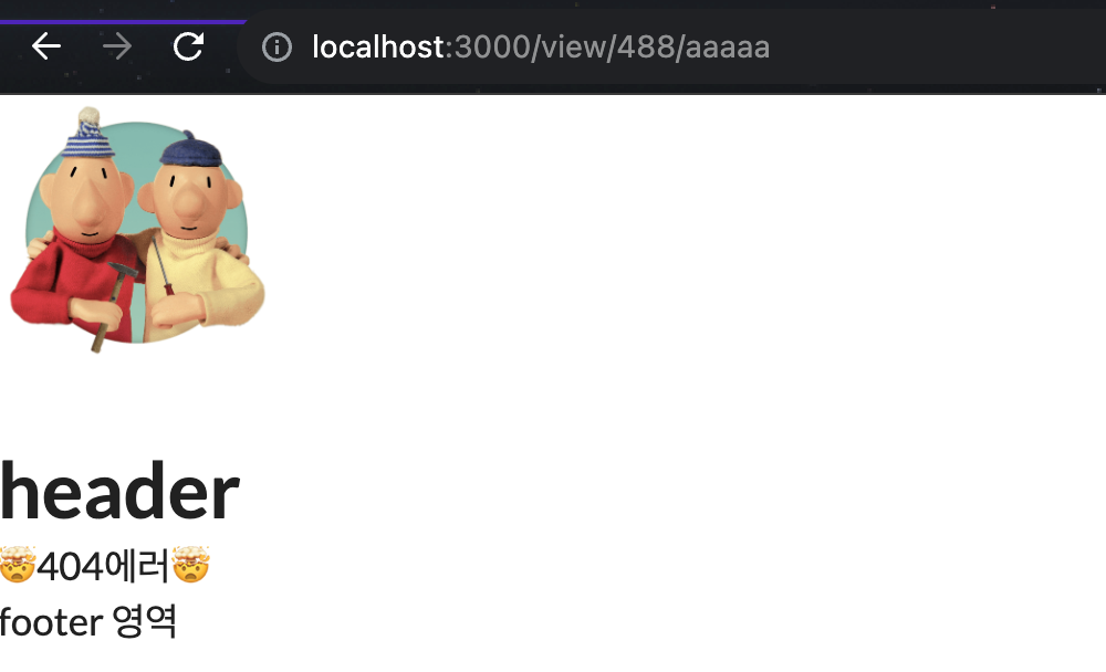 앞서 만들어 두었던 404.tsx 파일을 남겨두었기 때문에 404 에러일 때는 해당 페이지로 넘어가고,