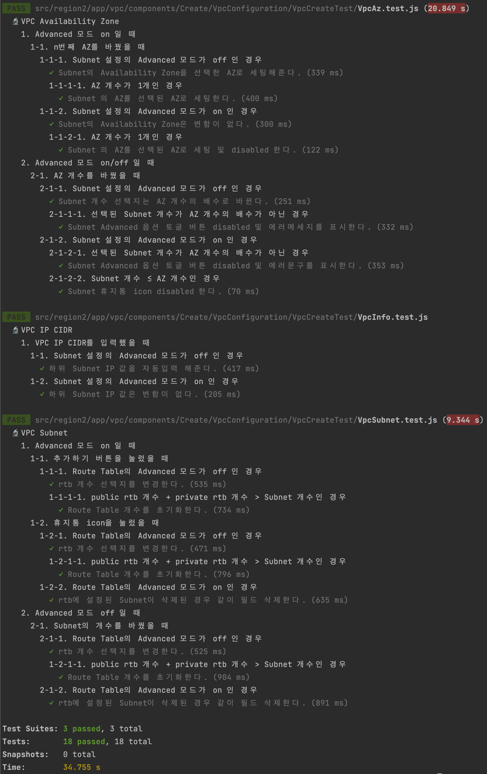 테스트 description을 시나리오에 맞춰서 작성했기 때문에, 어떤 상황인지 금방 파악이 가능하다.