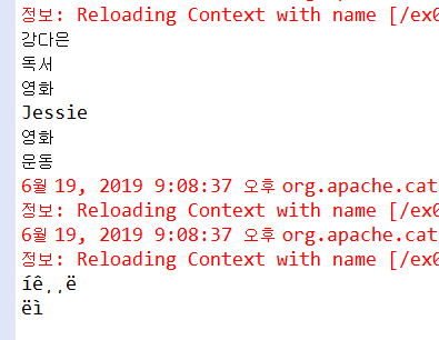 데이터를 url로 보냄 → Tomcat에서 인코딩 방식을 지정했기 때문에 깨지지 않음