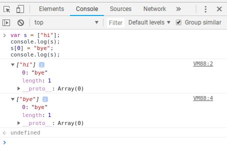 따라서 배열이나 객체같은 경우는 console이 준비완료될 때까지 값이 구해지지 않는다. (= lazy evaluation)