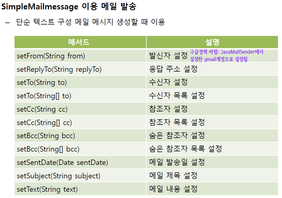 - MailSender — SimpleMailMessage (메일제목, 단순 텍스트 내용)